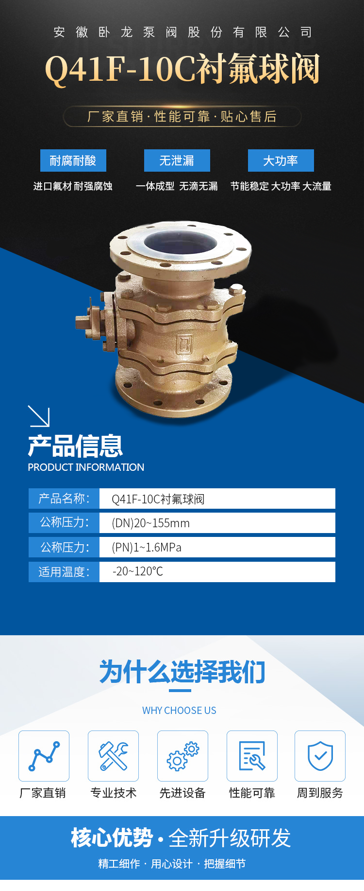 Q41F-10C系列氟塑料球阀,采用碳钢精铸,内衬氟塑料,球阀及过流部件包氟塑料,具有外型美观、强度高、经久耐用的特点。